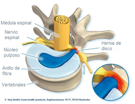 Cada disco está compuesto por dos elementos: el núcleo pulposo y un anillo fibroso que lo rodea. Las repetidas presiones o movimientos inapropiados pueden ocasionar que el anillo sufra cierto desgaste, produciéndose una alteración en el núcleo.