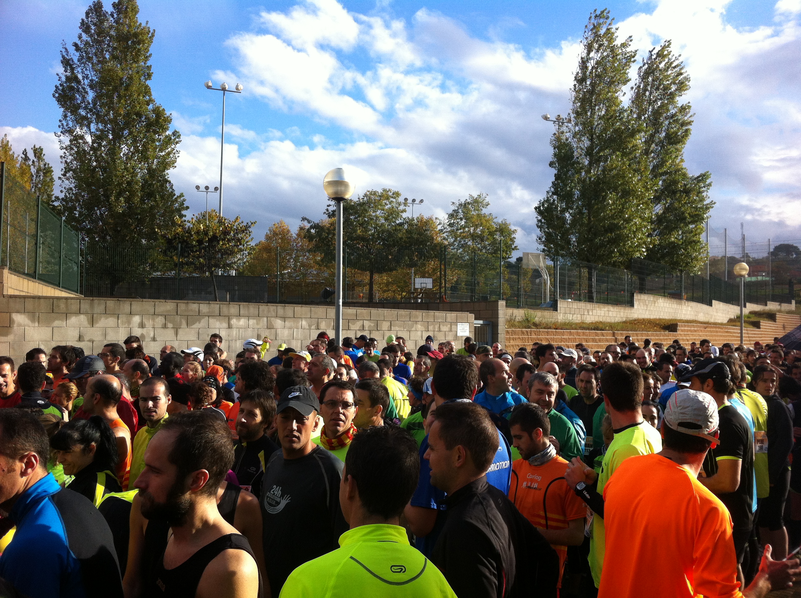 El dia despuntava ben tapat i plovisquejava una mica. L’ambient era fred i el sostre del Pavelló Municipal s’agraïa durant els minuts previs a la cursa. Pocs moments abans del tret de sortida el sol va fer acte de presència i va servir per donar la tranquil·litat als corredors que la pluja respectaria l’estona de competició.