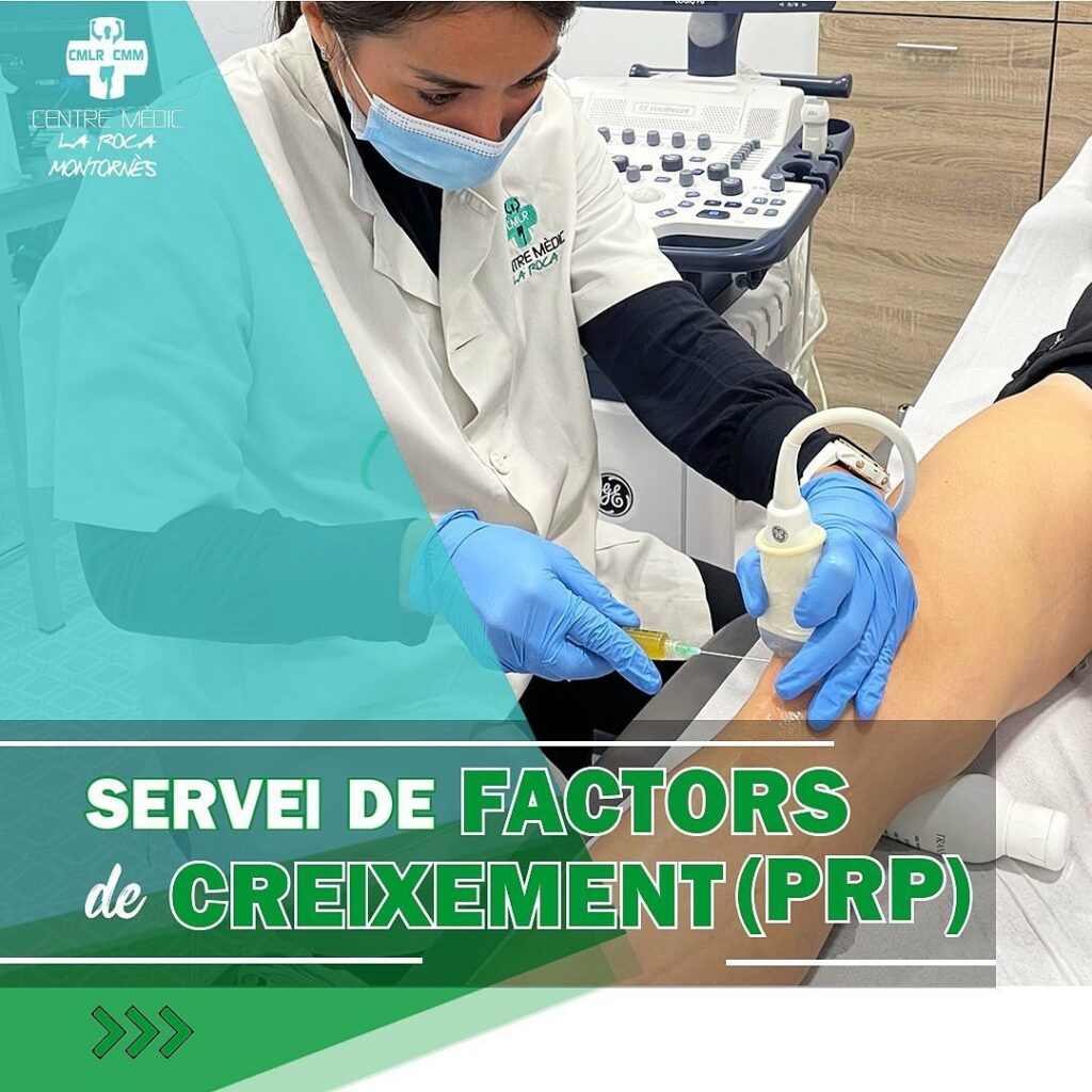 Els factors de creixement també anomenats PRP (plasma ric en plaquetes), són un tractament que consisteix en l’extracció de plasma del pacient a partir d’un volum de sang molt petit. A partir d’aquest plasma, s’obté la fracció rica en factors de creixement que s’injecten en el focus diana de la lesió del pacient. És un tractament segur i ben tolerat que ofereix múltiples aplicacions en patologies de l’aparell locomotor.
