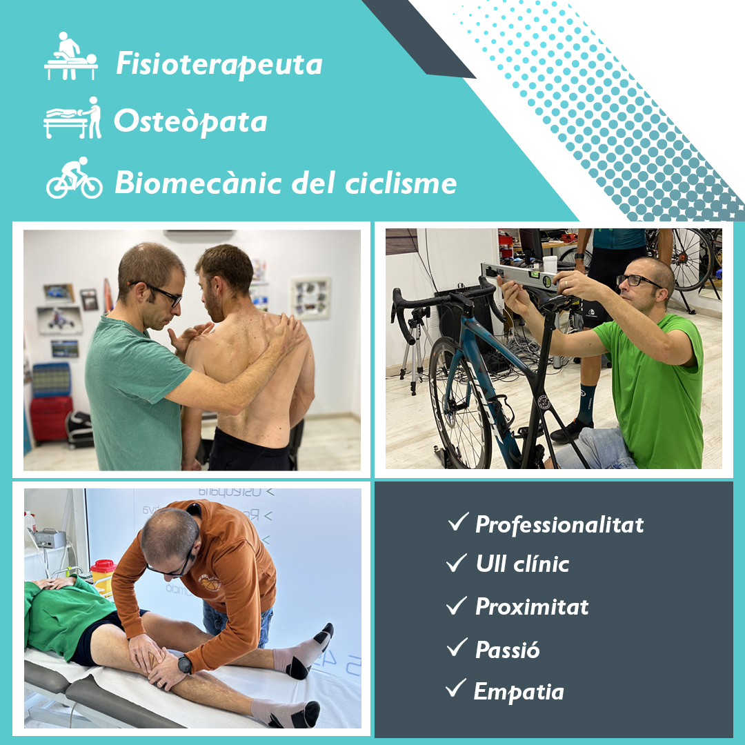 Tenia clar que volia ser professional de la salut o de l’esport. Vaig dubtar entre fer INEFC, infermeria o fisioteràpia. Al final em vaig decidir per la fisioteràpia i no em vaig equivocar perquè m’apassiona. Després de fisioteràpia vaig estudiar el màster en osteopatia. Em queda el “cuquet” de no haver fet INEFC.