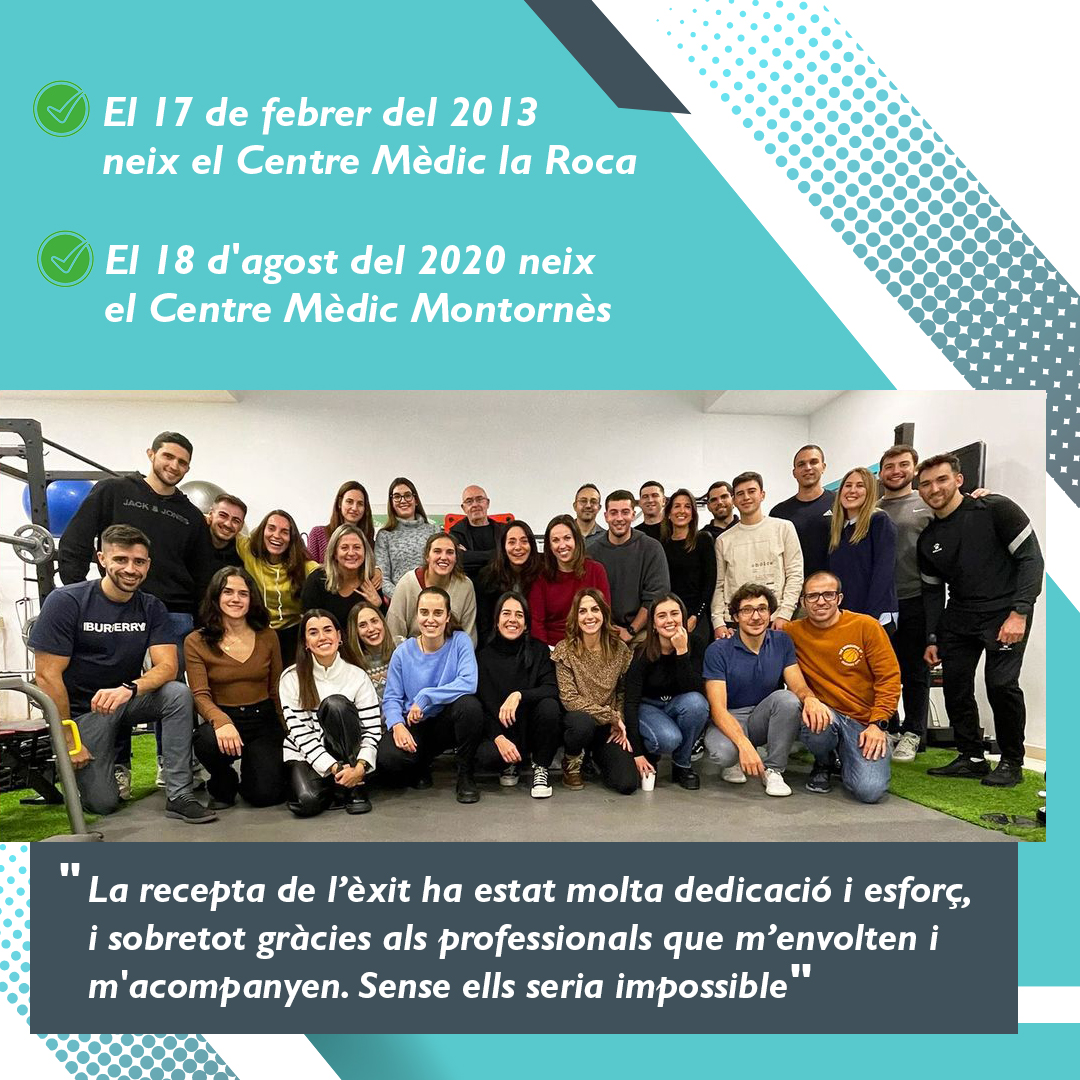 Ens parlaves de la creació del Centre Mèdic la Roca, 11 anys enrere. Sé que no m’ho deixes dir gaire alt, però ho puc dir perquè és així, l’objectiu de crear el CMLR s’ha més que complert, sou un centre mèdic esportiu de referència a la comarca i també a nivell català. De fet, vénen molts esportistes d’altres parts de Catalunya i també de l’estat per tractar-se amb vosaltres.